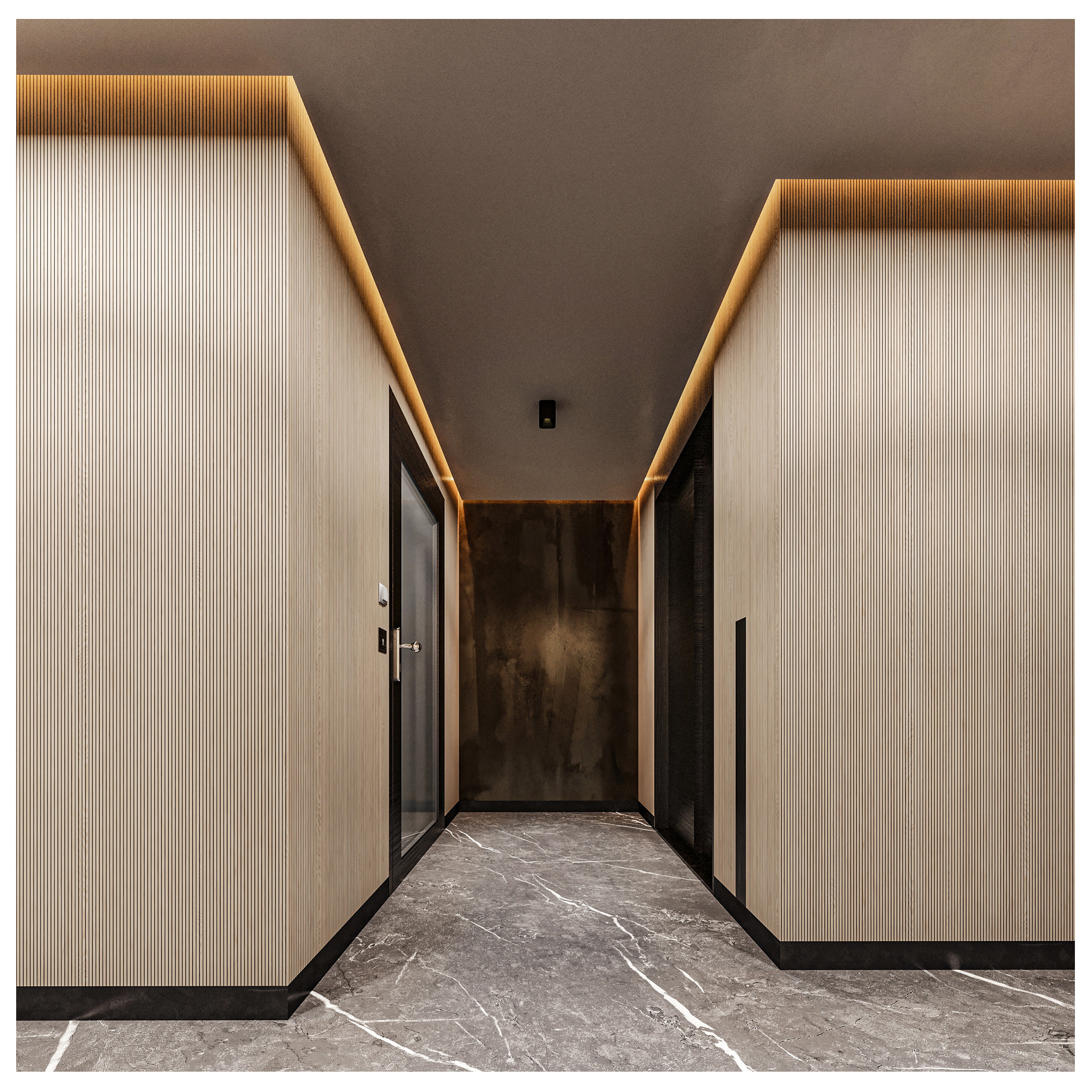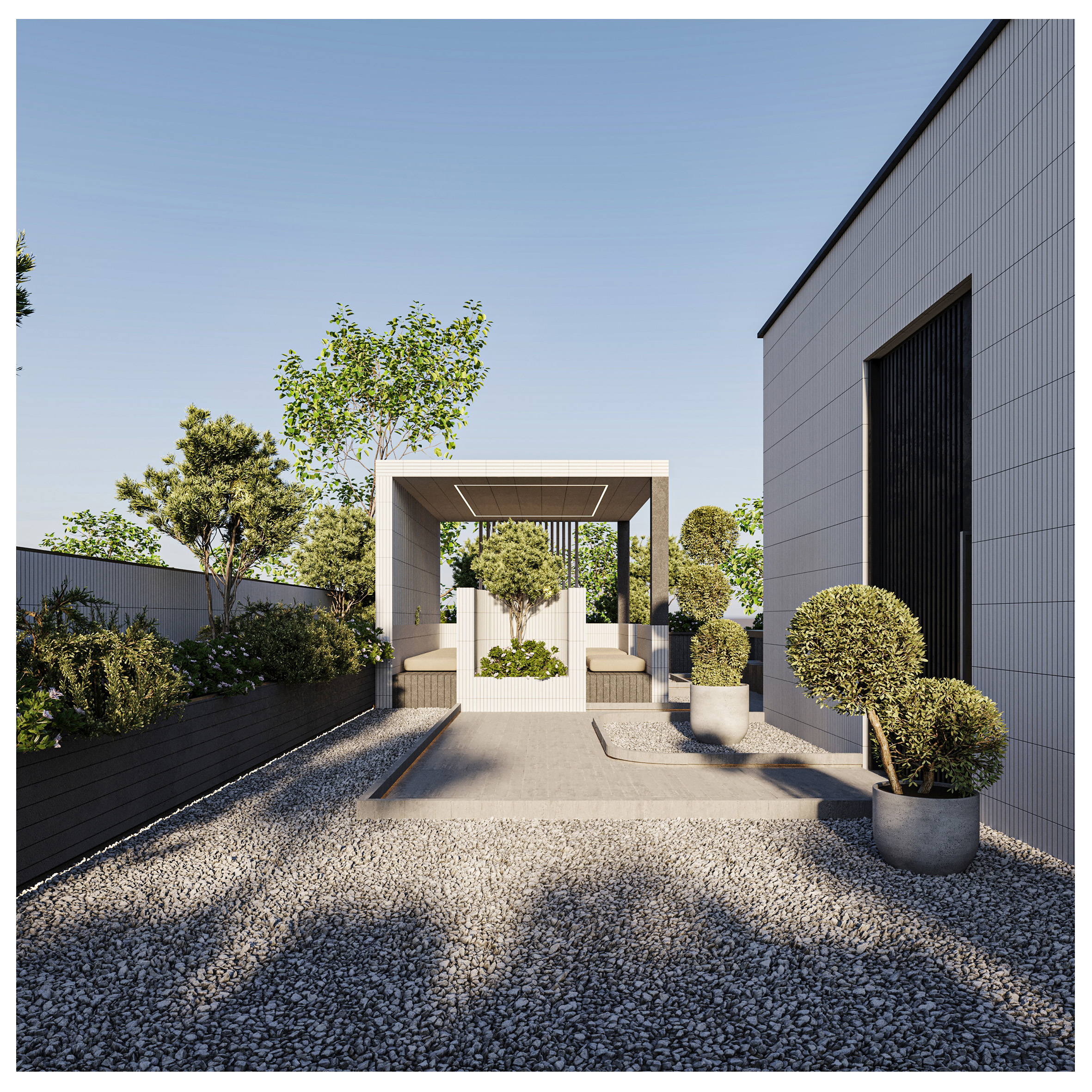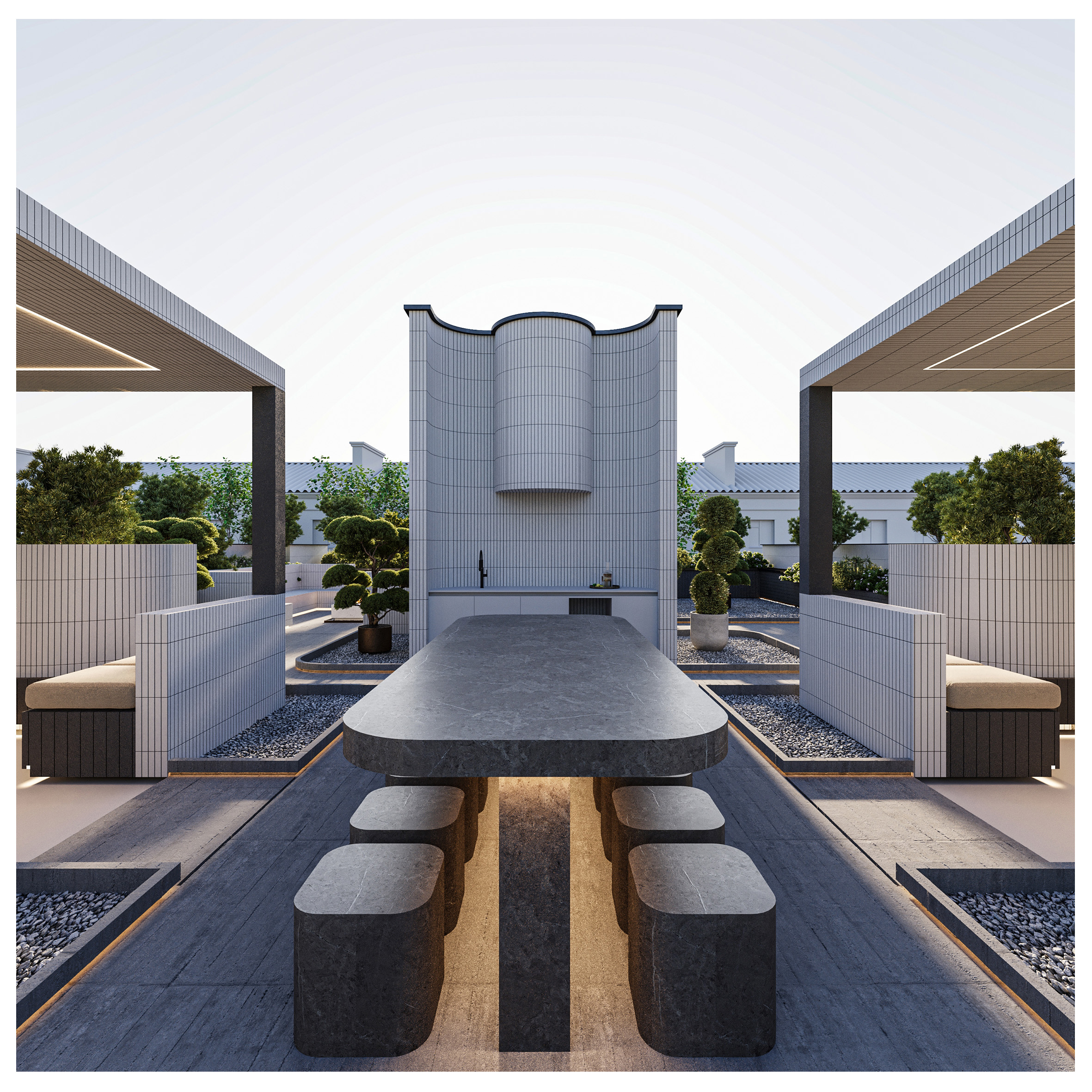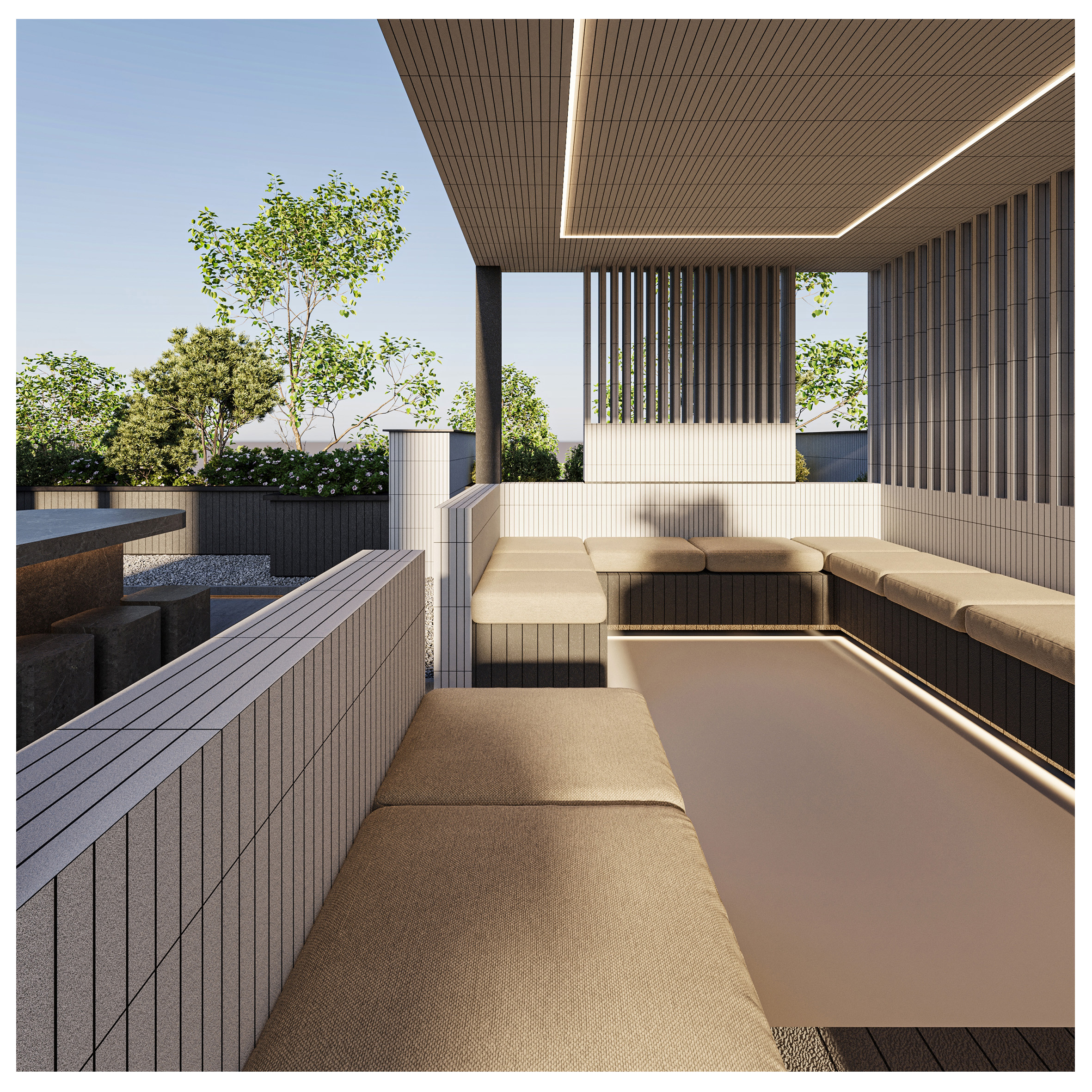 Arsa Apartment, housing two residential units on each floor, establishes a visual connection between the alleyway and the sky by utilizing vertical elements. Large, furnished terraces extend along the living space of the units and, in combination with greenery, create a pleasant experience of semi-open living continuously connected with nature. Furthermore, the project’s roof garden is designed as an extension of its facade, forming a unified and coherent whole in harmony with other elements.