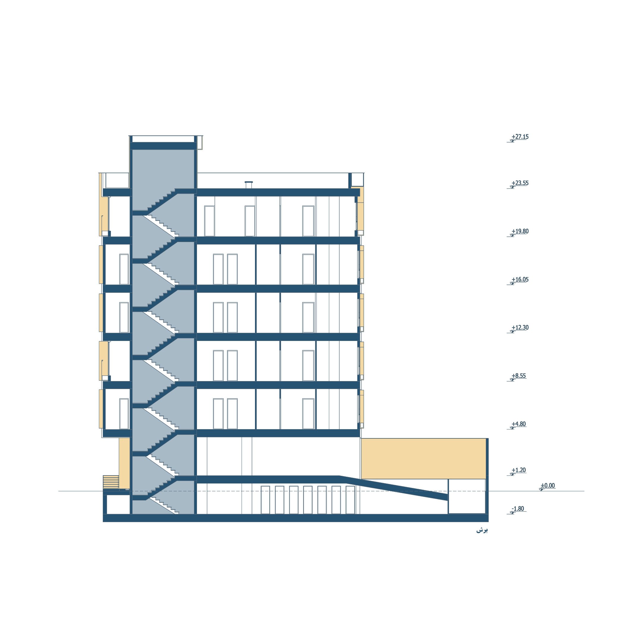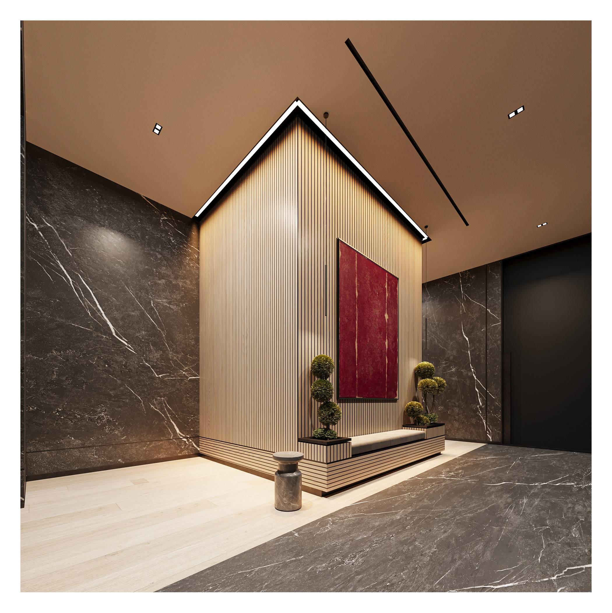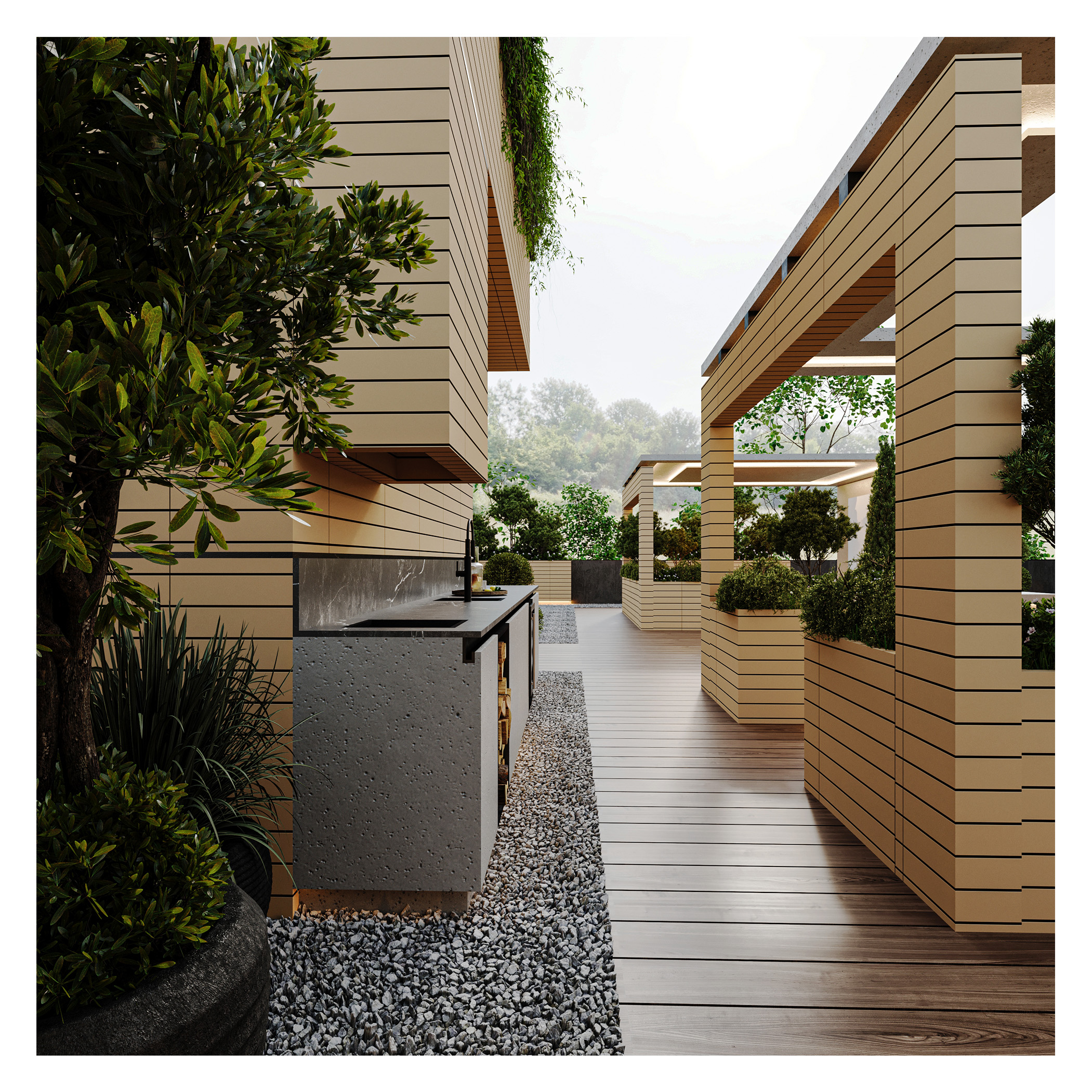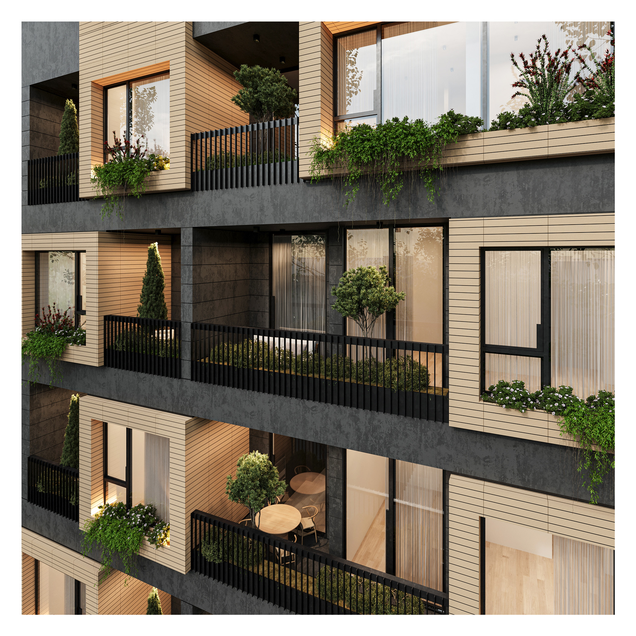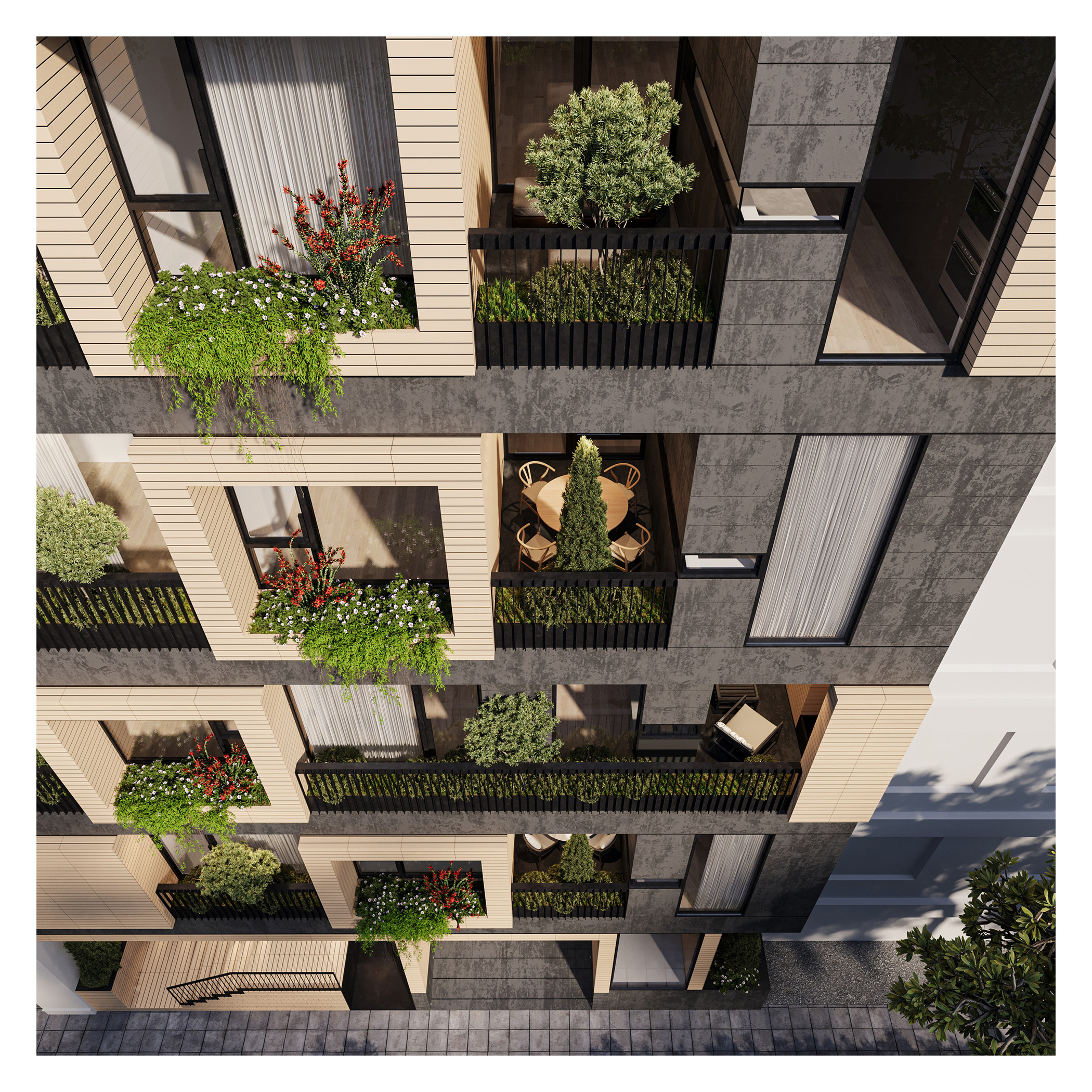 The three-unit apartment building designed within the urban fabric is an attempt to reconcile communal living with nature on a small scale. Each unit in this building has large, wide balconies enlivened with diverse flower boxes and lush greenery. These balconies not only provide private semi-open spaces for residents, but also enhance the building’s and the street’s environmental quality by creating a green layer on the exterior. In this project, the boundary between indoor and outdoor space is not rigid and closed; rather, with the presence of plants, light, and brick, it has found a fluid and dynamic definition that extends life from the inside out.